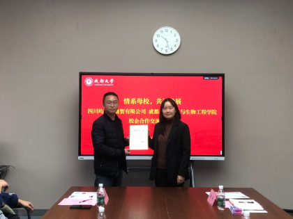 与四川均子兰商贸有限公司校企合作交流座谈会在校顺利举行。公司总经理邱华强(2007级生物工程专业校友)、产品经理伍松涛、市场经理蒲成斌返校参与交流。免费成人动漫副书记蒋桂高、校友工作办公室基金会工作科副科长王彦丹等共同接待并参与座谈。