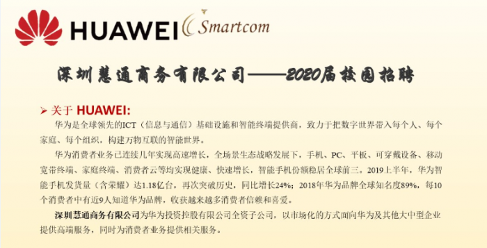 深圳慧通商务有限公司(华为子公司)10月15日宣讲会、面试会